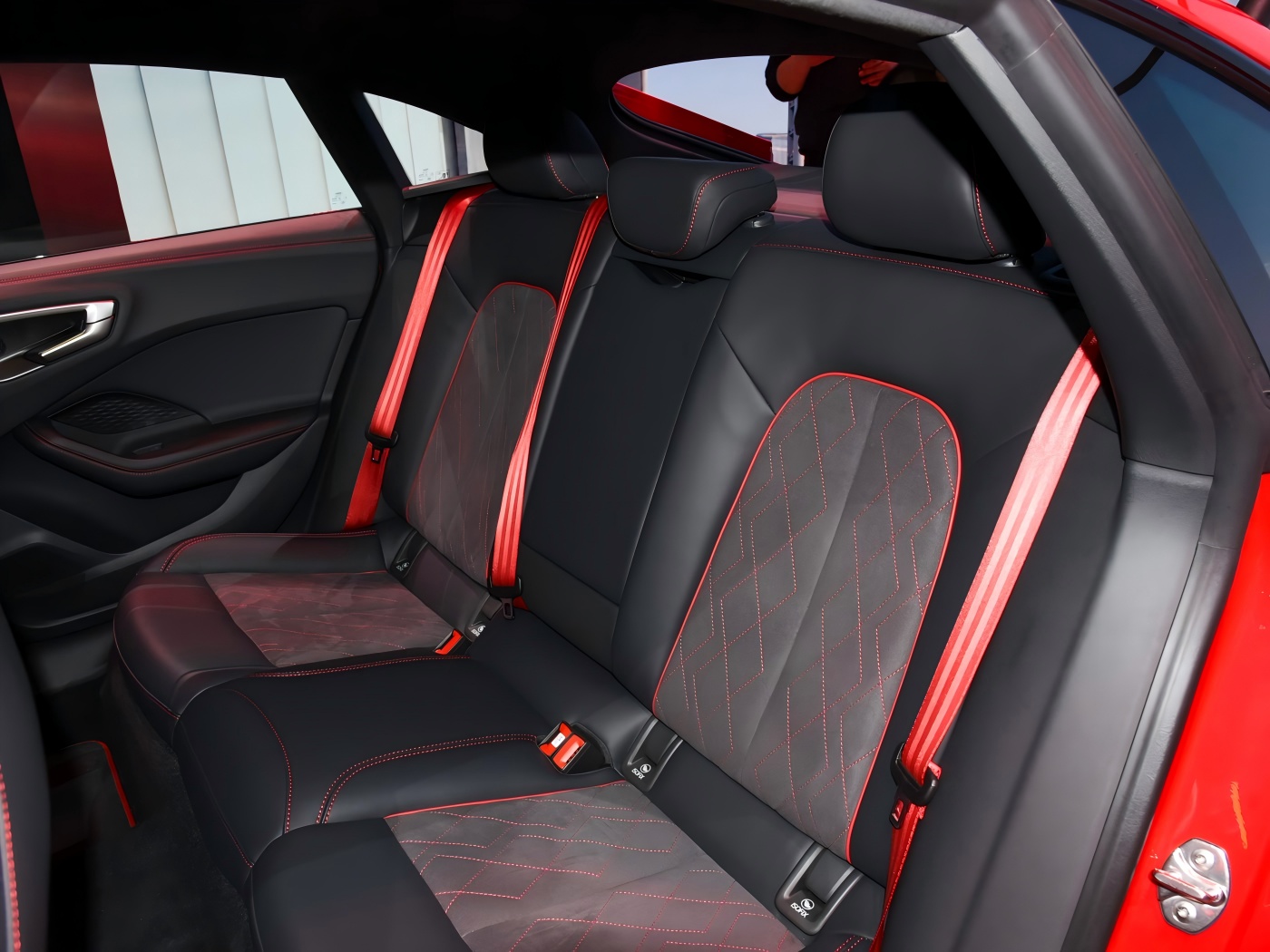 Från sidan har bilen ramlösa dörrar och en klassisk fastback -design. Den utökade hjulbasen är tydligt synlig från en vy, och taklinjen lutar försiktigt ner från C-pelaren för att säkerställa gott om passagerarutrymme. På baksidan innehåller den en fullbredd design med andra generationens OLED-baklyktor som erbjuder olika anpassningsbara belysningssignaturer för att tillgodose unga konsumenters 个性化 behov. När det gäller dimensioner mäter den nya bilen 4 903 mm i längd, 1 883 mm i bredd och 1 427 mm i höjd, med en hjulbas på 2 922 mm. Detta representerar en ökning med 74 mm i längd och 22 mm i hjulbas jämfört med den utländska Audi A5.